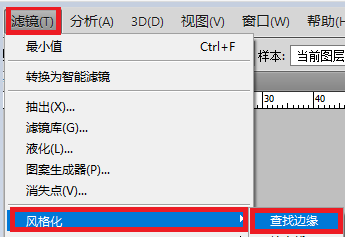 第三步:选择滤镜,点击风格化,选择查找边缘选项。